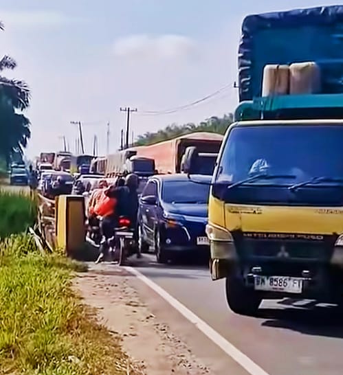 SISKOMPN.COM – Kemacetan panjang terjadi di Jalan Lintas Timur menuju Pelabuhan Bakauheni, Lampung Selatan. Antrean kendaraan logistik mencapai sekitar 2 kilometer dan berlangsung lebih dari 12 jam sejak pukul 02.00 WIB.