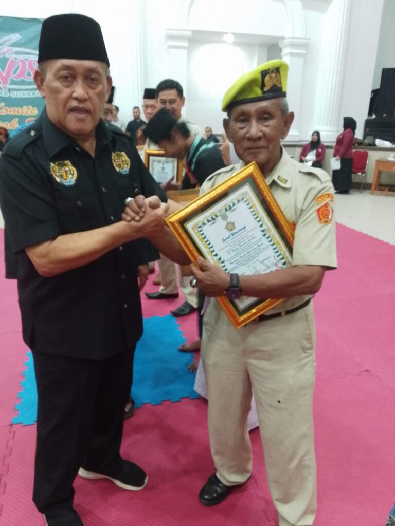 Penghargaan tokoh budayawan nasional pada Festival Pencak Silat IPSI Cup VI SukabumiPenyerahan penghargaan tokoh budayawan nasional pada Festival Pencak Silat IPSI Cup VI di Gedung Juang Sukabumi