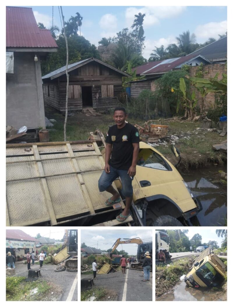 Kecelakaan Tunggal terjadi sekitar Pukul 01.00 WIB. Insiden ini melibatkan armada Coldiesel BM 8619 SU milik Pak Yosep, warga Sungai Apit.