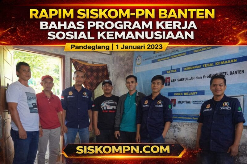 SISKOMPN.COM | Pandeglang, 1 Januari 2023 — Rapat koordinasi SISKOM-PN Banten membahas program kerja jangka pendek dan menengah untuk memperkuat peran sosial dan kemanusiaan. Kegiatan ini berlangsung di Sekretariat SISKOM-PN Provinsi Banten, Desa Majeu, Kecamatan Seketi, Kabupaten Pandeglang.