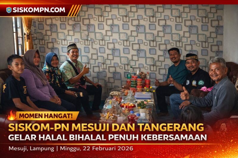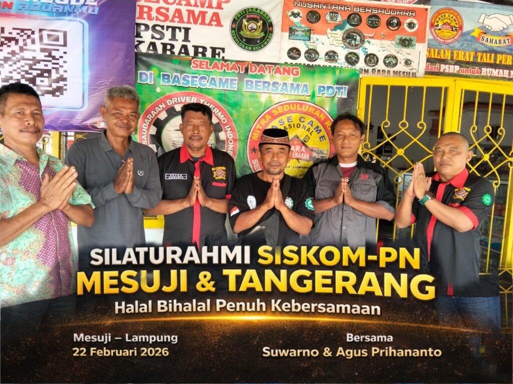 SISKOMPN.COM – Mesuji Lampung Minggu, 22 Februari 2026, keluarga besar SISKOM-PN Kabupaten Mesuji, Lampung menyambut kunjungan silaturahmi Halal Bihalal dari SISKOM-PN Kabupaten Tangerang.
