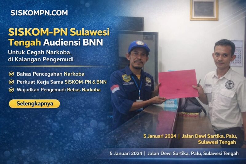SISKOMPN.COM | Sulawesi Tengah, 5 Januari 2024 — SISKOM-PN Sulawesi Tengah audiensi BNN sebagai langkah nyata untuk mencegah penyalahgunaan narkoba di kalangan pengemudi. Ketua SISKOM-PN Sulawesi Tengah, Sapruddin, mengajukan permohonan resmi kepada Badan Narkotika Nasional (BNN) Provinsi Sulawesi Tengah.